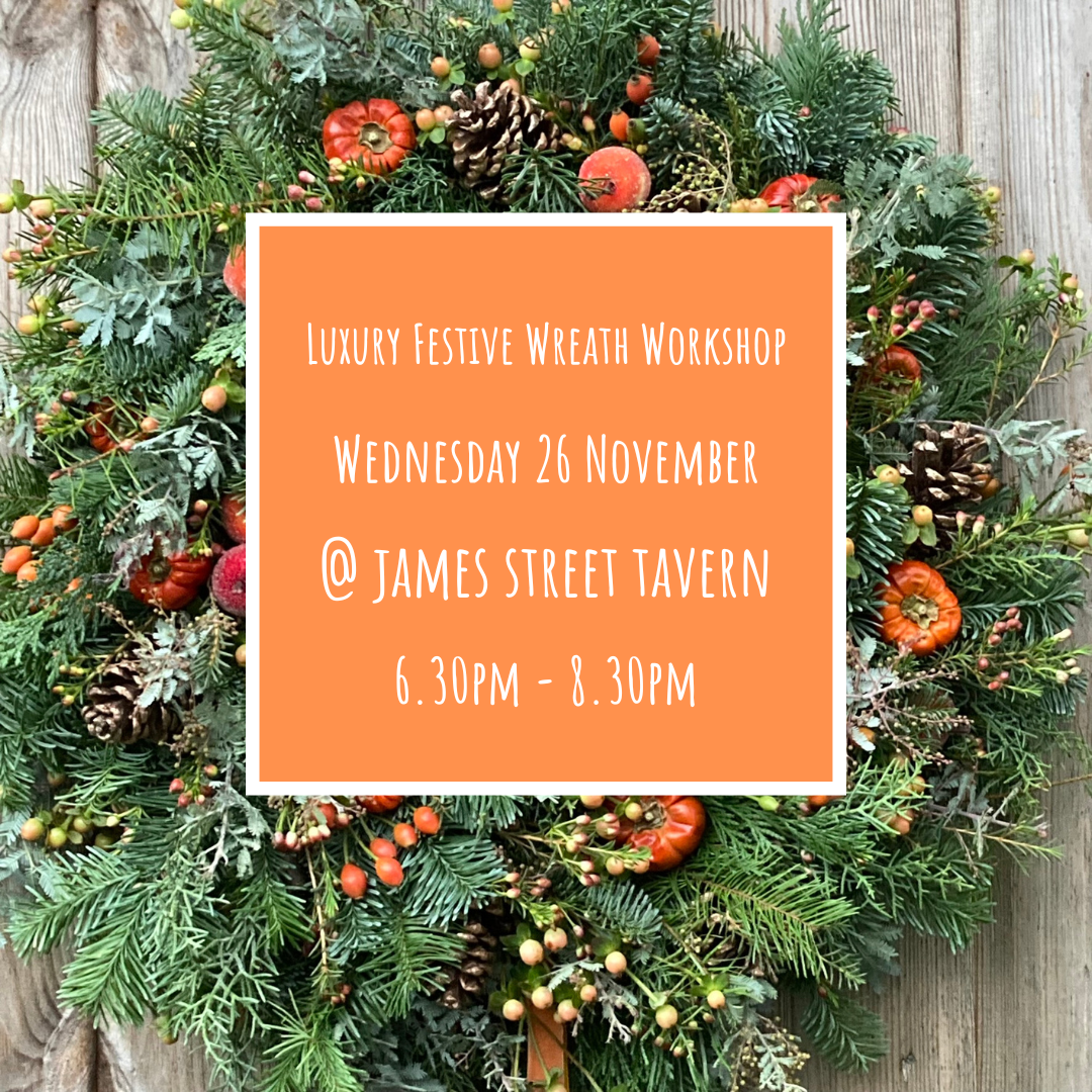 Surround yourself with festive foliage, cones, sparkle and more as you create your own wreath in your own style. We will guide you through the process, working on a moss base, with a selection of Winter foliage, you will create your own wreath in your own style, with a selection of twigs, cones, berries and more to create it in your own style.